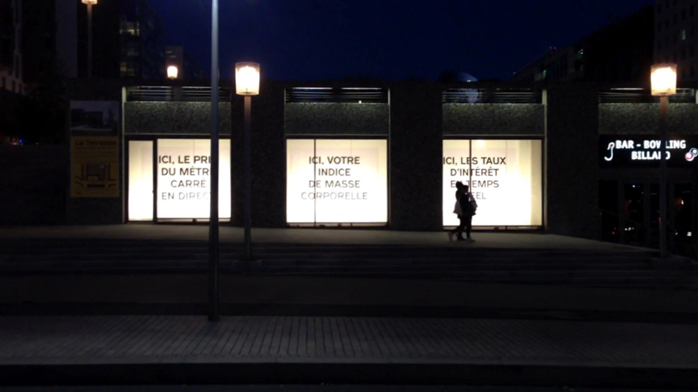 Augmented Window premiered at the Centre Pompidou at the Futur en Seine festival, between June 17th and 26th, 2011. The exhibition was located at the top of the escalators, on the sixth floor, with the window pointed towards Paris and the Halles district. 16 artists and authors produced 158 artworks. This first edition enabled to experiment with each of the project’s dimensions: on the one hand, its structuring dimension, as a protocol that structured the curatorial approach, the work with the artists, the types of pieces they proposed, and the work protocol, and on the other, the physical dimension of the object itself.